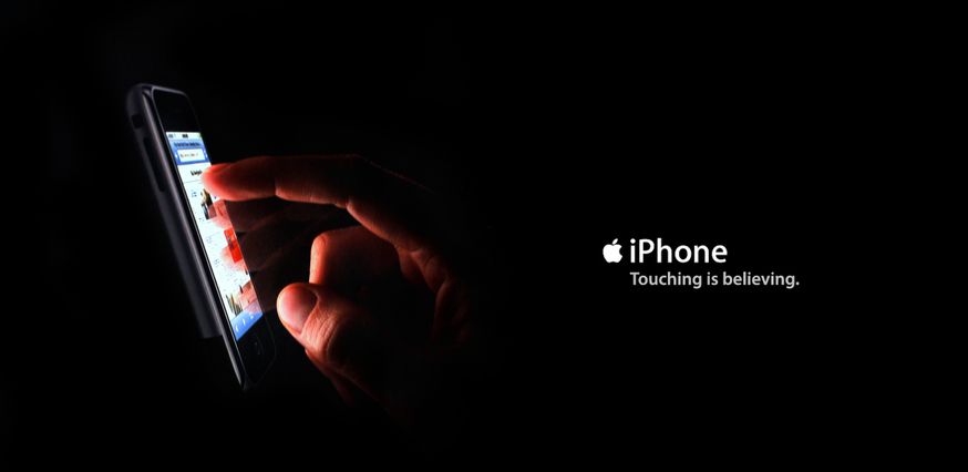 Un’altra celebre pubblicità dell’iPhone raffigurava il dispositivo sospeso in aria, dentro uno sfondo di pura neritudine. Creato ex nihilo, lo smartphone, come un’icona, diffonde luce, lasciando intravedere una mano che lo sfiora, lo accarezza, danzando le dita sopra lo schermo. La scritta che leggiamo in basso è dichiaratamente religiosa: touching is believing. L’immagine registra il movimento delle mani, le costituisce nel movimento, ricordandoci che oggi “noi non disponiamo di un’altra esperienza dell’essere che non sia l’operatività” (Giorgio Agamben). Allo stesso tempo, il movimento rende la mano trasparente, quasi diafana; così facendo, questa pubblicità esibisce apertamente il carattere antinomico con cui s’investe: mischiando eterno e temporale, trasparenza e opacità, l’iPhone si pone come un enigma, un mysterium che anima il mondo, a patto di essere animato, toccato da qualcuno. La mano e l’iPhone entrano in un rapporto d’interdipendenza in cui l’originato diventa senza origine: la tecnologia della mano subisce una dislocazione operata dallo strumento, si fa diafana di mondo, ricostituendosi come entità spirituale la cui realtà è conferita proprio dall’oggetto luminoso che tocca ‒ che domanda di essere toccato. Il punto d’origine è, allora, per-sempre-indeciso.
