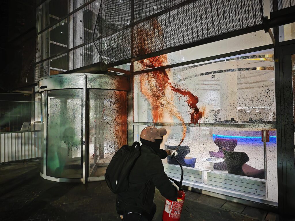 Groups including Shut the System, Carnage Total and Scientist Rebellion say their activists last night smashed windows and spray-painted offices of Allianz, a major global insurance company, over its complicity in Israeli arms. The groups said offices were defaced in Austria, France, Germany, Italy, the Netherlands, Spain, Taiwan, and Birmingham.