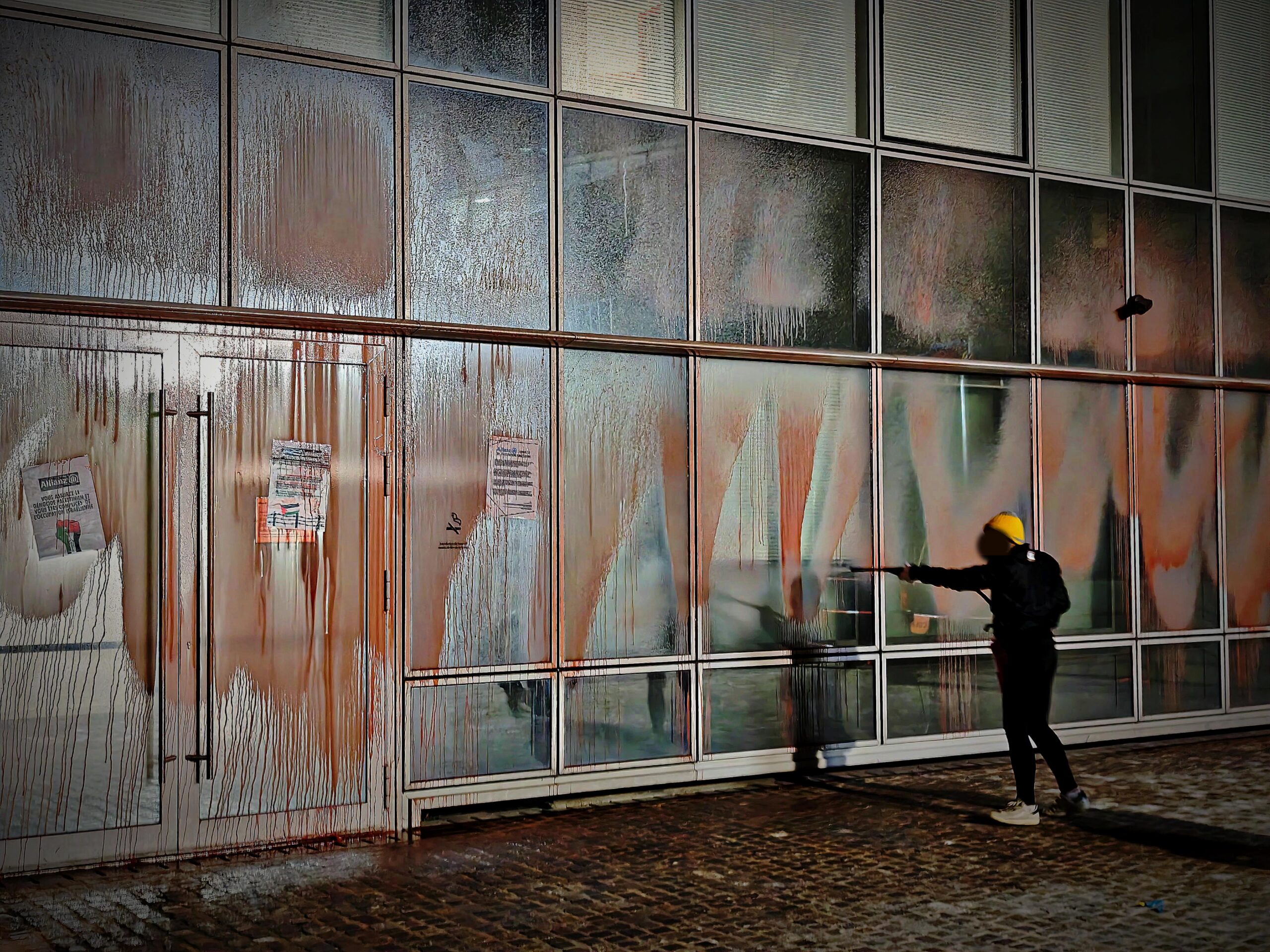 Provided photos from ParisThe actions follow the 1 November renewal of Allianz’s contract with Israeli arms company Elbit Systems. The group noted the actions coinciding with the anniversary of the Balfour Declaration in 1917.