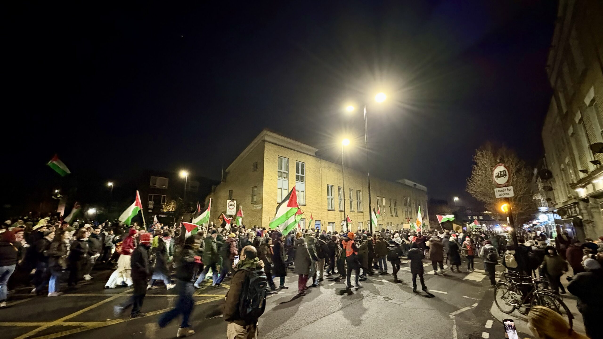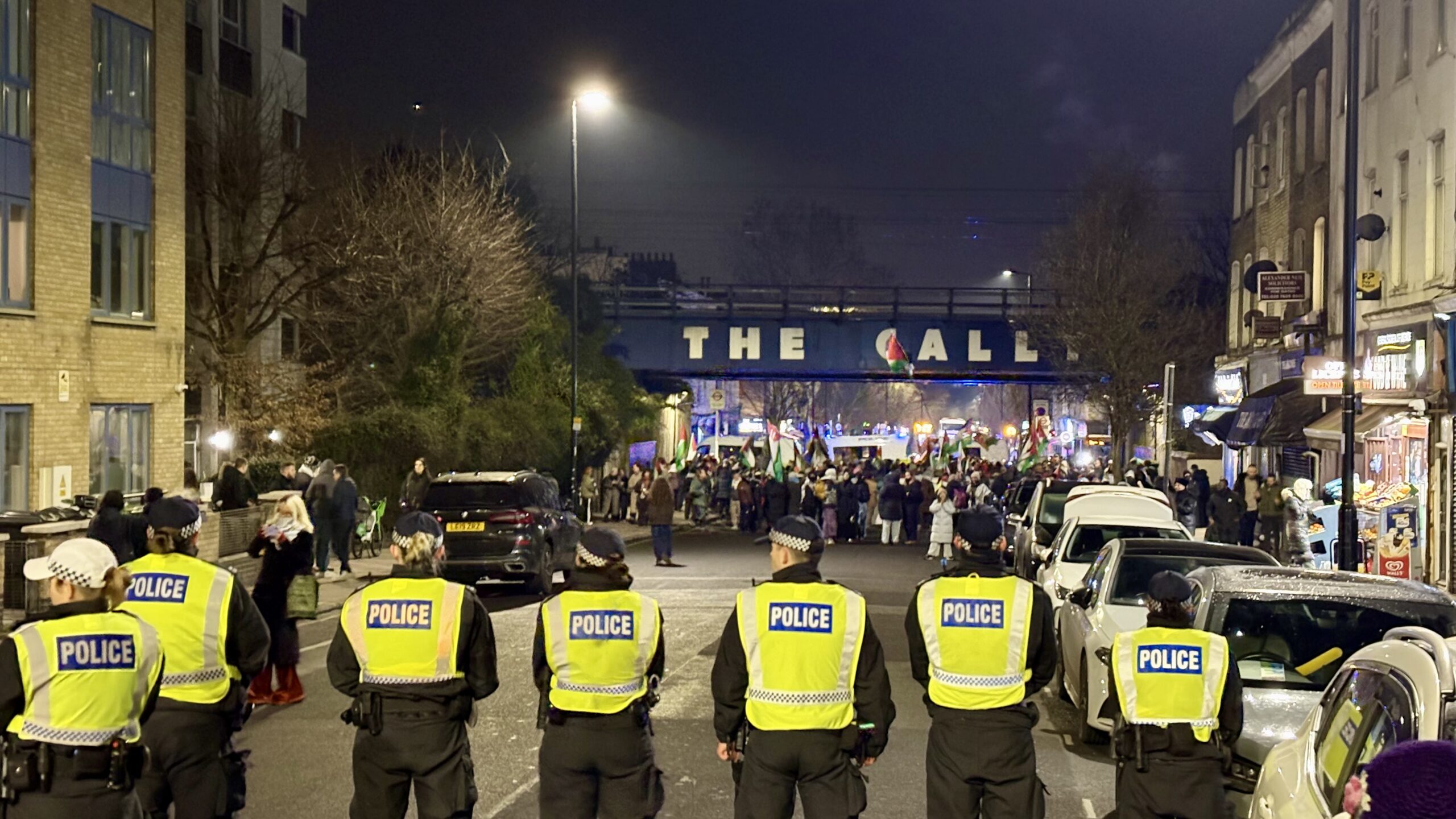 The march was halted and forced back towards Caledonian Road. Further attempts to move south were blocked by additional cordons, leaving protesters penned-in on the carriageway. The aggressive policing approach generated predictable friction, resulting in minor injuries and two arrests, both reportedly released in the early hours of 1 January.